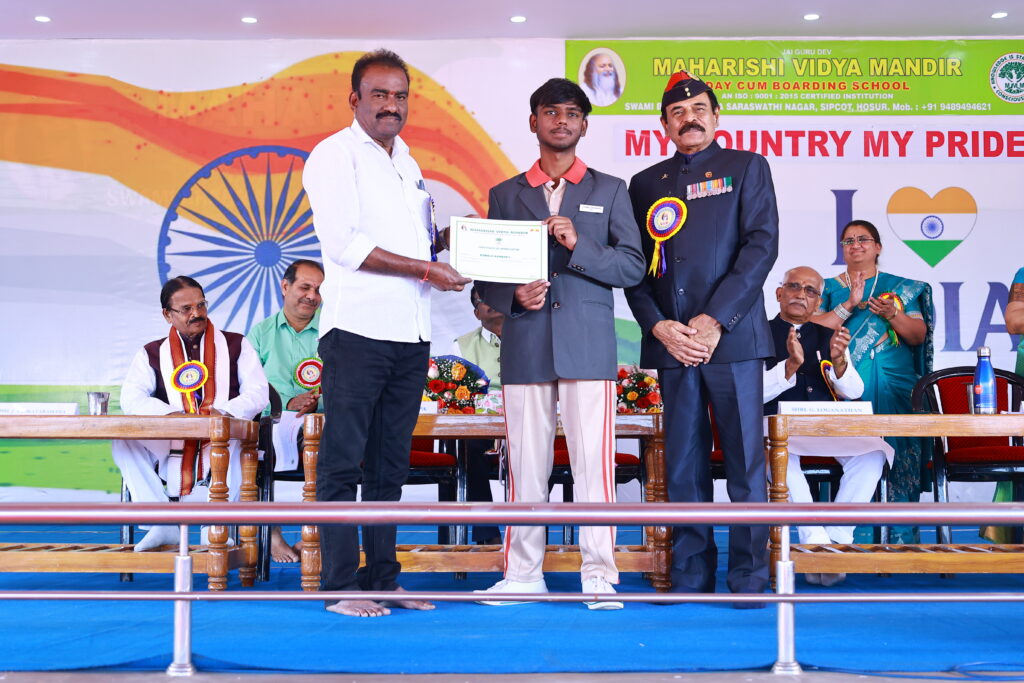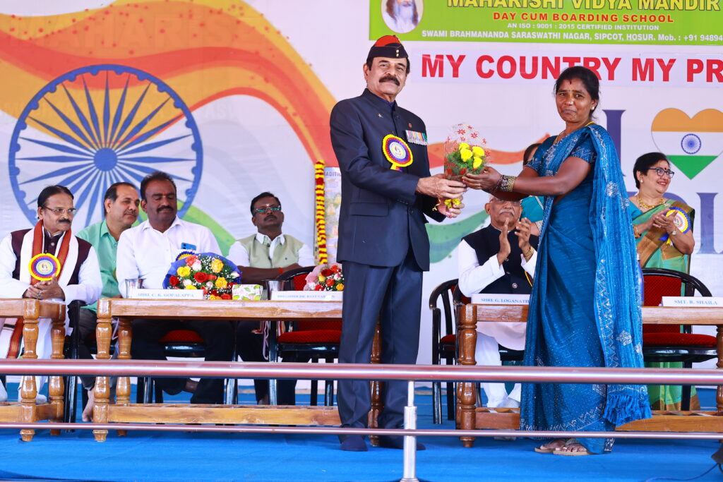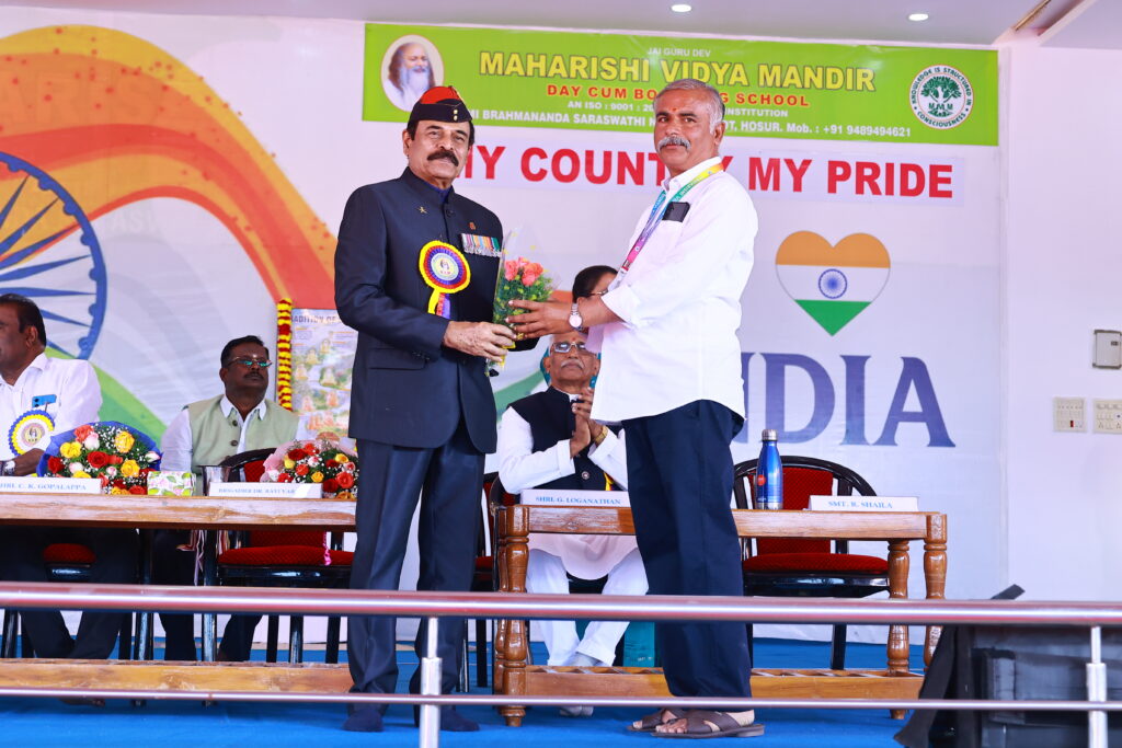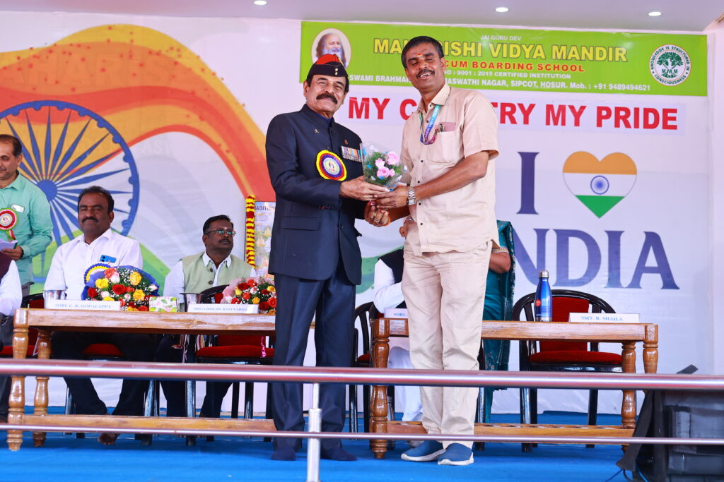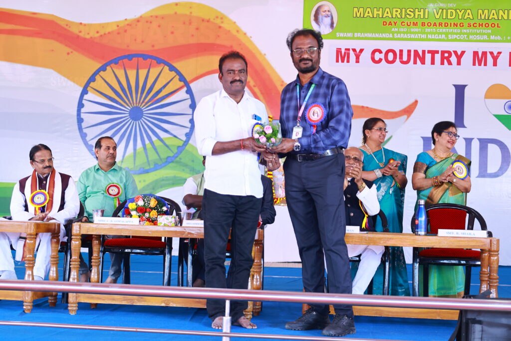 We were honoured by the presence of our Chief Guest, Brigadier Dr. Ravi Varman (Retd.), COO, MVM Group of Schools, and our Guest of Honour, Mr. C. K. Gopalappa, District Education Officer (Private Schools), Krishnagiri. Their inspiring addresses motivated our students and reinforced the values of patriotism, responsibility, and purposeful living.
